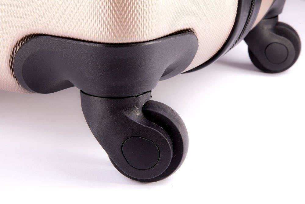 - 4 koła (spinner 360) (koła wykonane z gumy i PVC co dodatkowo wzmacnia je przed uderzeniami zewnętrznymi, oś na której zamocowane zostało koło wzmocniona pyłem diamentowym)