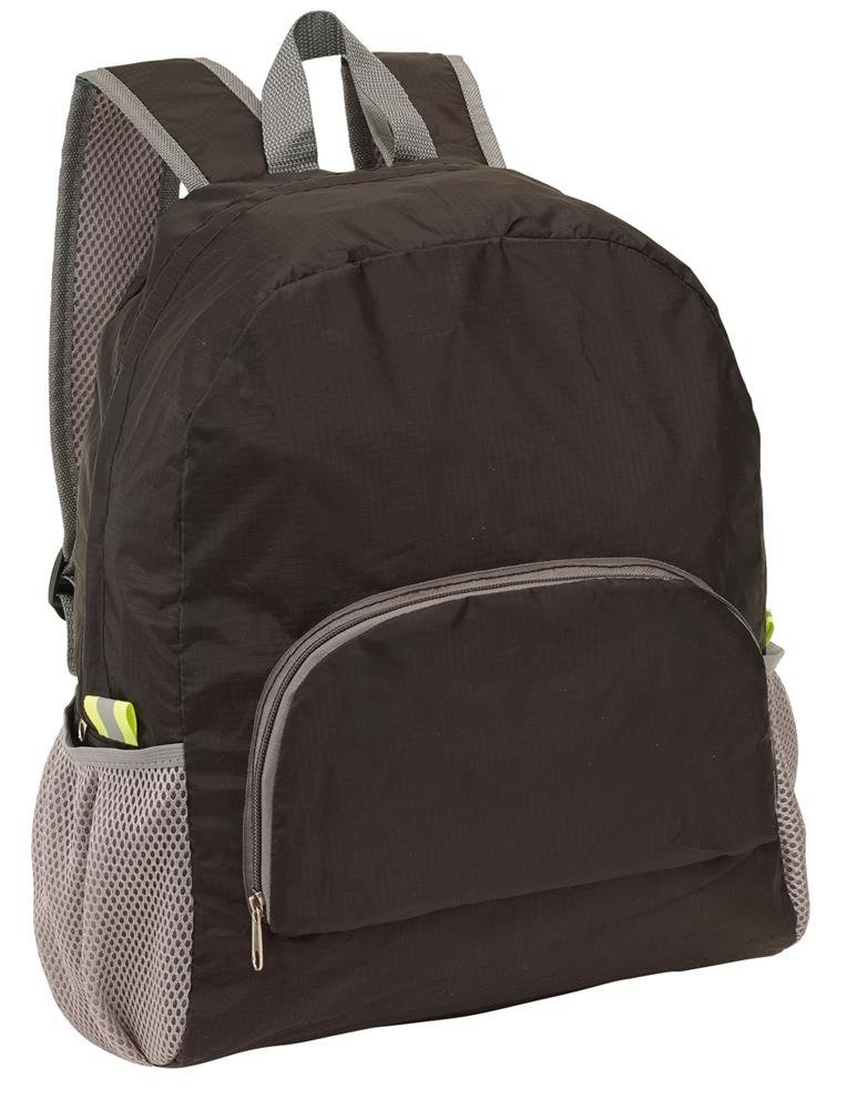 Składany dzięki przedniej kieszeni na zamek z dwustronnym suwakiem i uchwytem wewnątrz.