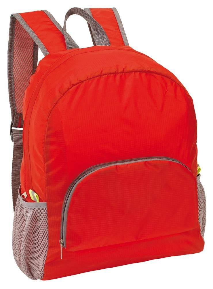 Składany dzięki przedniej kieszeni na zamek z dwustronnym suwakiem i uchwytem wewnątrz.