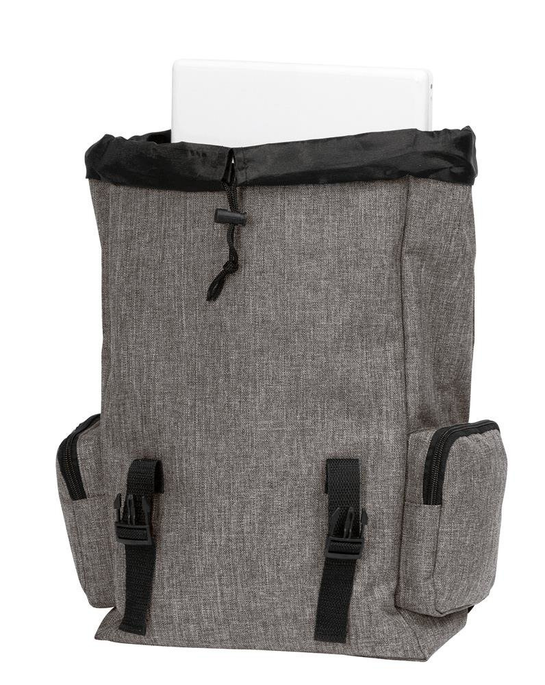Plecak DONEGAL S z główną komorą ze sznurkami do zaciągania, dwoma zatrzaskami i wyściełaną przegrodą na laptopa w środku, dwie boczne kieszenie na zamek, uchwyt do przenoszenia,