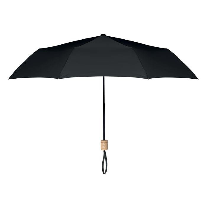 Składany parasol 21 cali, 3 sekcje z tkaniną pongee 190T RPET, czarny stelaż i żebra.