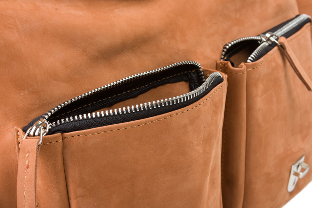 - pod klapą znajdują się dwie kieszonki zamykane na zamek spokojnie zmieszczą się drobiazgi, a nawet duże portfele