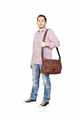 Torba na ramię w stylu casual wykonana z naturalnej skóry. Stworzona z myślą o codziennym użytkowaniu. Dzięki funkcjonalnym dodatkom takim jak uchwyty na pióra wewnątrz torby czy bocznej kieszeni na napój na zewnątrz, torba skórzana RCH05 to doskonały pomysł na modny dodatek do szkoły i pracy. Pomieści laptop, skoroszyt A4 i wiele innych potrzebnych drobiazgów. Wykonana metodami tradycyjnymi, co dodaje jej uroku i niepowtarzalnego stylu.