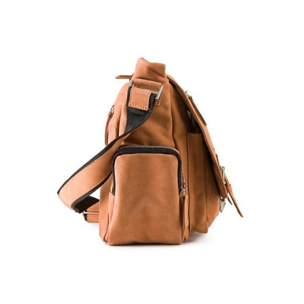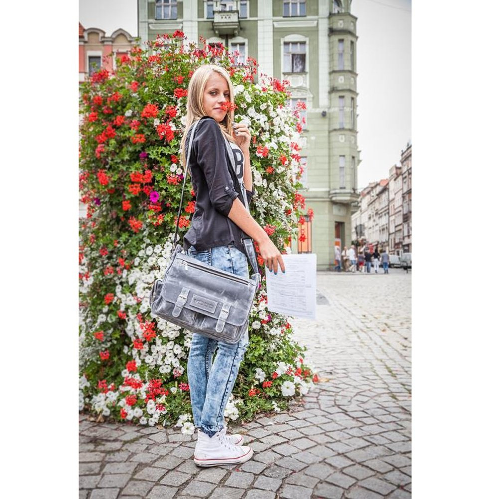 Torba na ramię w stylu casual wykonana z naturalnej skóry. Stworzona z myślą o codziennym użytkowaniu. Dzięki funkcjonalnym dodatkom takim jak uchwyty na pióra wewnątrz torby czy bocznej kieszeni na napój na zewnątrz, torba skórzana RCH05 to doskonały pomysł na modny dodatek do szkoły i pracy. Pomieści laptop, skoroszyt A4 i wiele innych potrzebnych drobiazgów. Wykonana metodami tradycyjnymi, co dodaje jej uroku i niepowtarzalnego stylu.