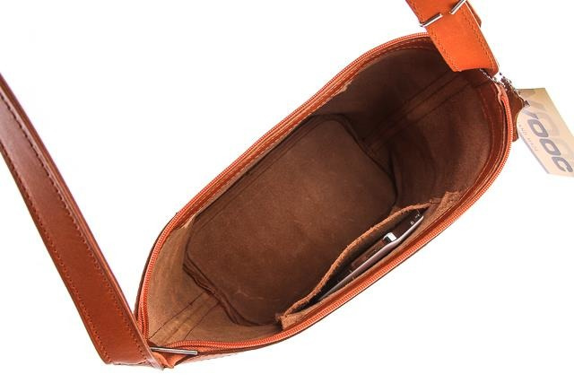 Skórzana torebka damska typu worek mieszcząca format A5. Idealna do casualowych stylizacji. Mimo swoich rozmiarów torebka jest bardzo pojemna i funkcjonalna z powodu jednej dużej komory zabezpieczonej zamkiem błyskawicznym. Wewnątrz znajduje się mała kieszonka na portfel, telefon oraz inne drobiazgi.