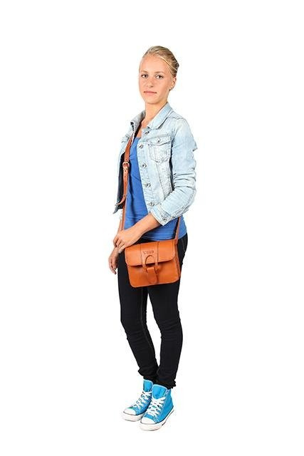 Mała torebka skórzana dla kobiet, które potrzebują zabrać ze sobą najpotrzebniejsze rzeczy jak portfel, smartfon, kosmetyki, klucze, itp. Torebka zapinana na magnes, z regulowanym paskiem na ramię. Wewnątrz dwie przegrody i jedna kieszeń zamykana na zamek. Z tyłu torebki kieszeń zapinana na zamek.