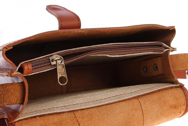 Mała torebka skórzana dla kobiet, które potrzebują zabrać ze sobą najpotrzebniejsze rzeczy jak portfel, smartfon, kosmetyki, klucze, itp. Torebka zapinana na magnes, z regulowanym paskiem na ramię. Wewnątrz dwie przegrody i jedna kieszeń zamykana na zamek. Z tyłu torebki kieszeń zapinana na zamek.