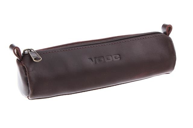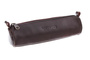 Okrągły piórnik z naturalnej skóry juchtowej. Elegancki, posłuży wiele lat użytkowania. Zamykany na suwak.