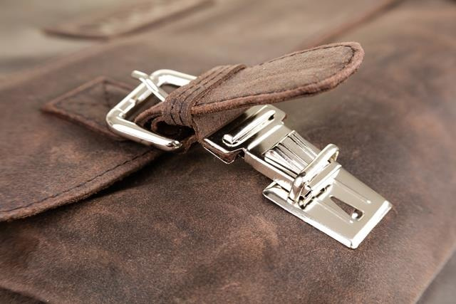 - klapa zamykana na zamek tic-tac osłonięty tradycyjnymi klamrami.