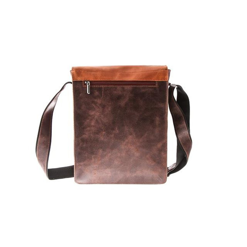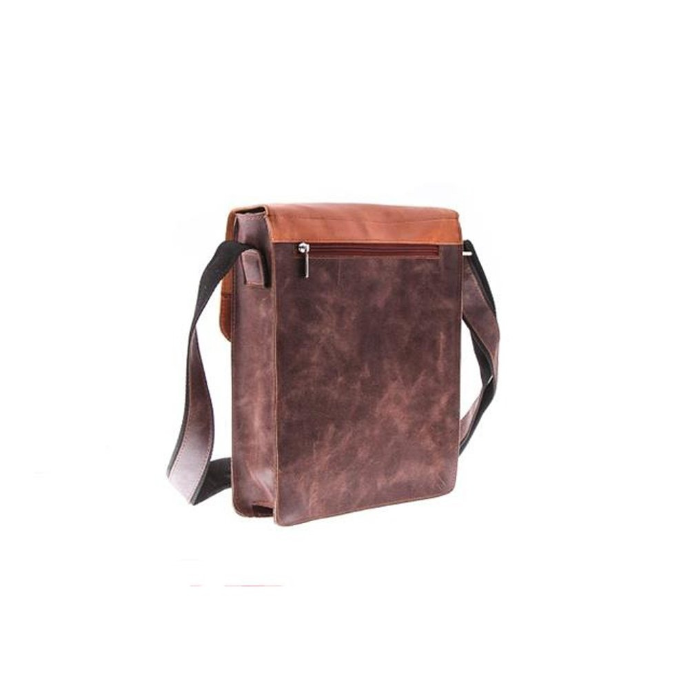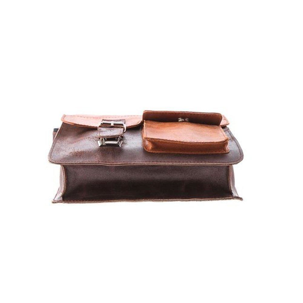 Dwukolorowa młodzieżowa torba przez ramię wykonana w stylu Old School ze specjalnie postarzanej naturalnej skóry. Dodatkową zaletą jest jej funkcjonalność oraz oryginalny wygląd. Zastosowanie dwóch kolorów skóry umożliwiło podkreślenie kształtów asymetrycznej klapy oraz zamykanej kieszonki na jej froncie.