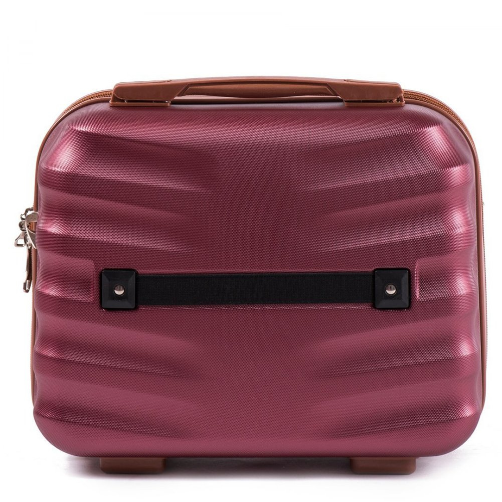 - na tylnej powierzchni znajduje się gumowa taśma do zamocowania kuferka na wysuwanej rączce walizki