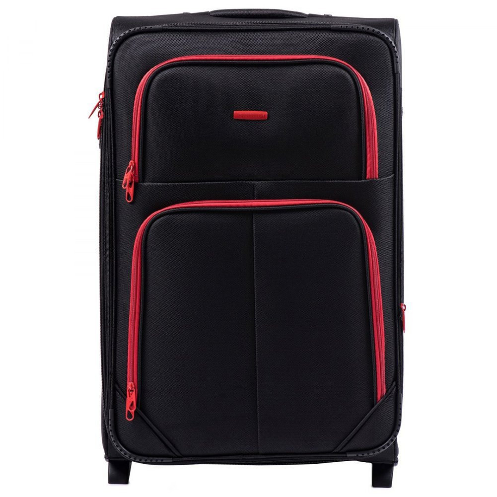 Nowoczesny, lekki model wykonany z bardzo wytrzymałego i odpornego tworzywa CODURA, z dwupoziomową teleskopową rączką. Zamek szyfrowy uniemożliwiający dostanie się do wnętrza osobom niepożądanym. Trwały, duraluminiowy stelaż wbudowany w walizkę. Wyposażony w dwa kauczukowo-gumowe kółka, które zapewniają stabilność prowadzenia. Wnętrze w ciemnym sygnowanym kolorze z dodatkową przegrodą zamykaną na suwak.