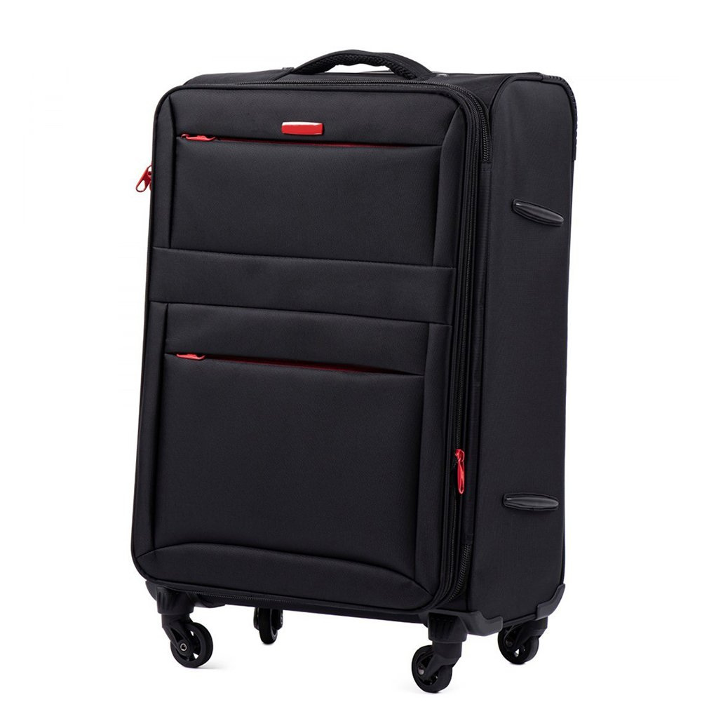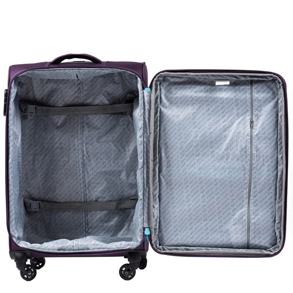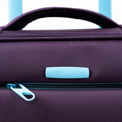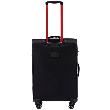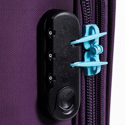 Nowoczesny, super lekki model wykonany z bardzo wytrzymałego i odpornego nylonu, z dwupoziomową teleskopową rączką. Zamek szyfrowy uniemożliwiający dostanie się do wnętrza osobom niepożądanym. Trwały, duraluminiowy stelaż wbudowany w walizkę. Wyposażony w cztery kauczukowo-gumowe kółka, które zapewniają stabilność prowadzenia. Wnętrze w ciemnym sygnowanym kolorze z dodatkową przegrodą zamykaną na suwak.