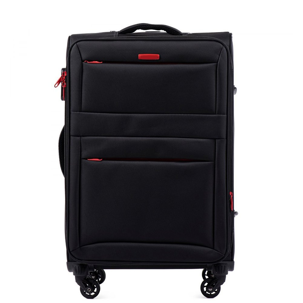 Nowoczesny, super lekki model wykonany z bardzo wytrzymałego i odpornego nylonu, z dwupoziomową teleskopową rączką. Zamek szyfrowy uniemożliwiający dostanie się do wnętrza osobom niepożądanym. Trwały, duraluminiowy stelaż wbudowany w walizkę. Wyposażony w cztery kauczukowo-gumowe kółka, które zapewniają stabilność prowadzenia. Wnętrze w ciemnym sygnowanym kolorze z dodatkową przegrodą zamykaną na suwak.