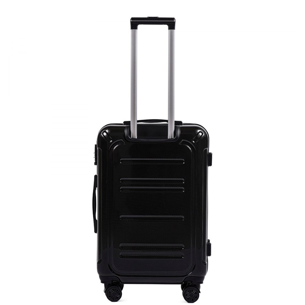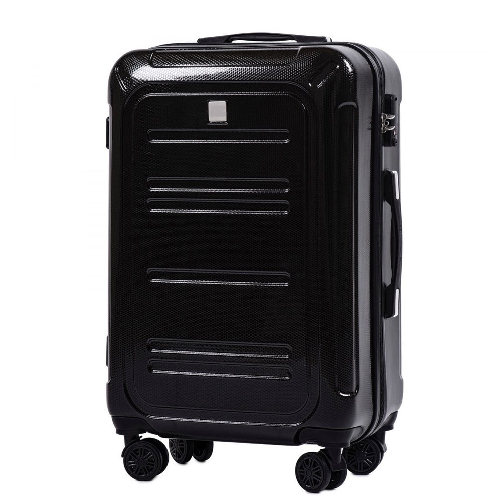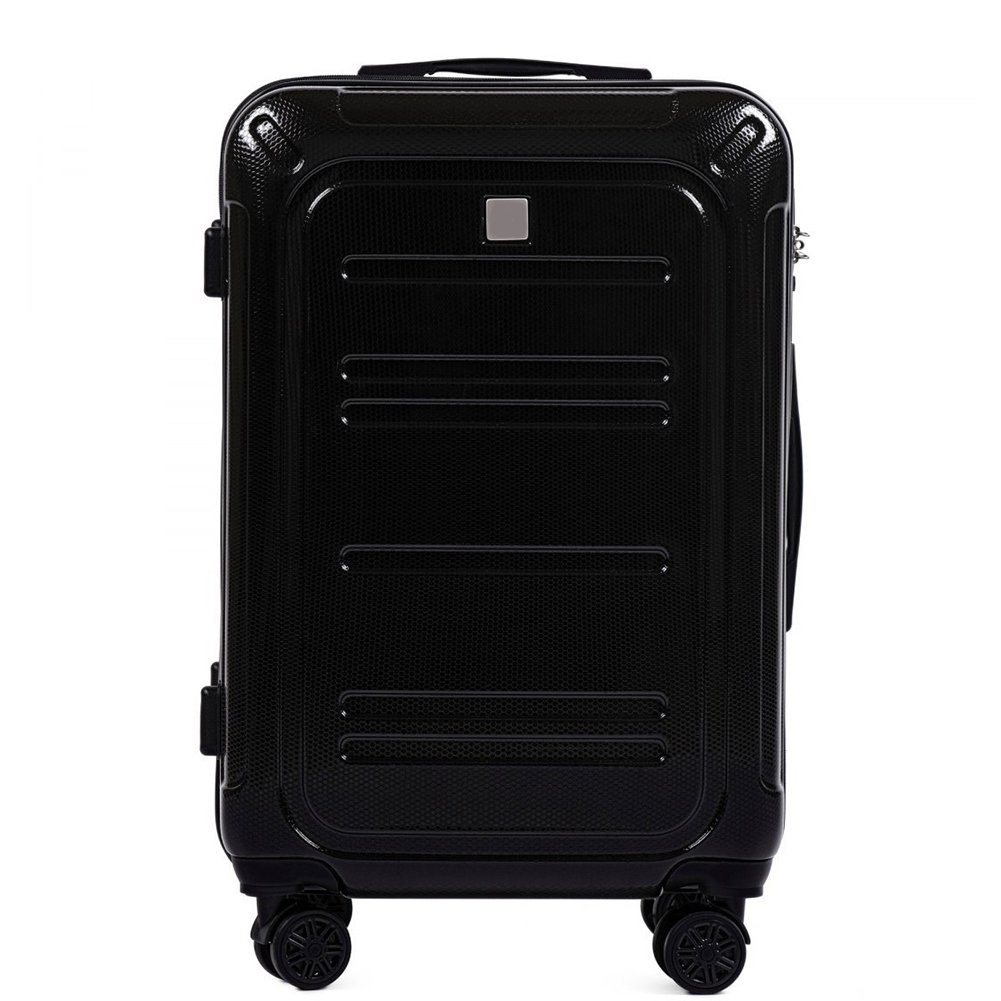 Nowoczesny, lekki model wykonany z bardzo wytrzymałego i odpornego na zarysowanie poliwęglanu, z dwupoziomową teleskopową rączką. Zewnętrzne, przyjemne w dotyku gumowe uchwyty oraz zamek szyfrowy uniemożliwiający dostanie się do wnętrza osobom niepożądanym. Trwały, duraluminiowy stelaż wbudowany w walizkę. Wyposażony w cztery, podwójne obrotowe kauczukowo-gumowe kółka, które zapewniają stabilność oraz lekkość prowadzenia w dowolnym kierunku. Wnętrze w ciemnym sygnowanym kolorze dzielone zamkiem błyskawicznym na dwie funkcjonalne komory.