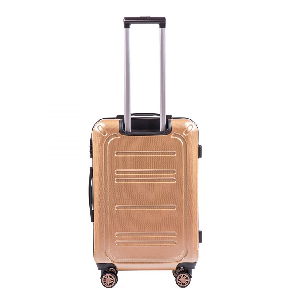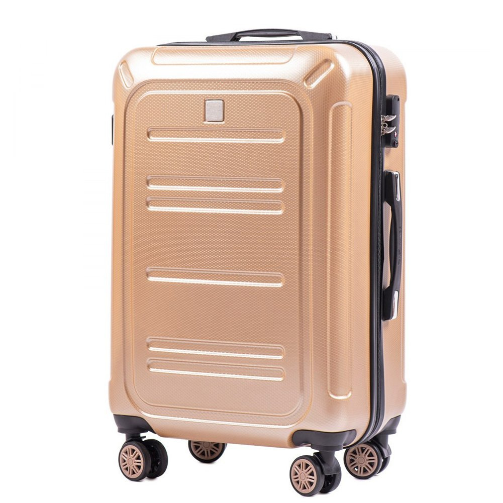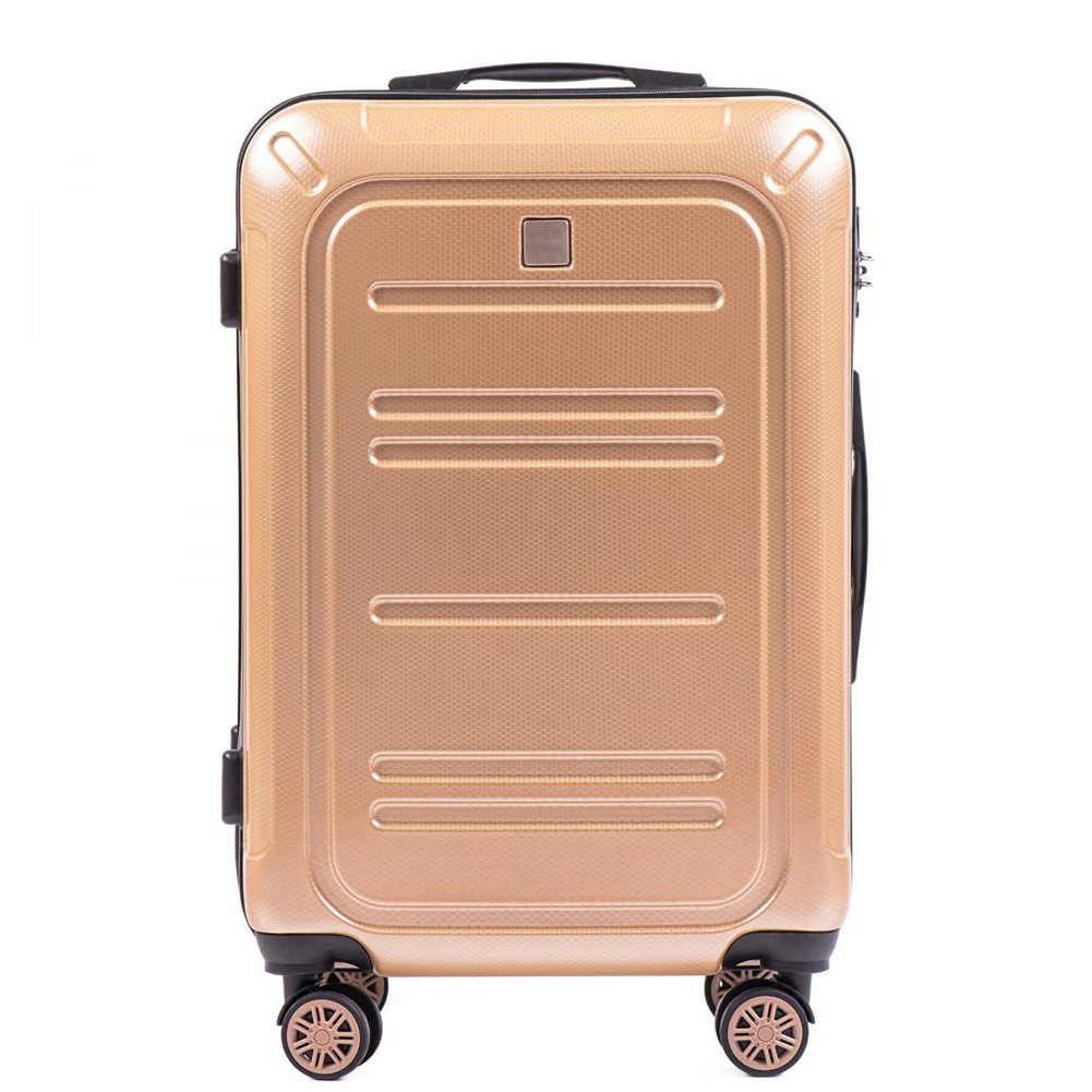 Nowoczesny, lekki model wykonany z bardzo wytrzymałego i odpornego na zarysowanie poliwęglanu, z dwupoziomową teleskopową rączką. Zewnętrzne, przyjemne w dotyku gumowe uchwyty oraz zamek szyfrowy uniemożliwiający dostanie się do wnętrza osobom niepożądanym. Trwały, duraluminiowy stelaż wbudowany w walizkę. Wyposażony w cztery, podwójne obrotowe kauczukowo-gumowe kółka, które zapewniają stabilność oraz lekkość prowadzenia w dowolnym kierunku. Wnętrze w ciemnym sygnowanym kolorze dzielone zamkiem błyskawicznym na dwie funkcjonalne komory.