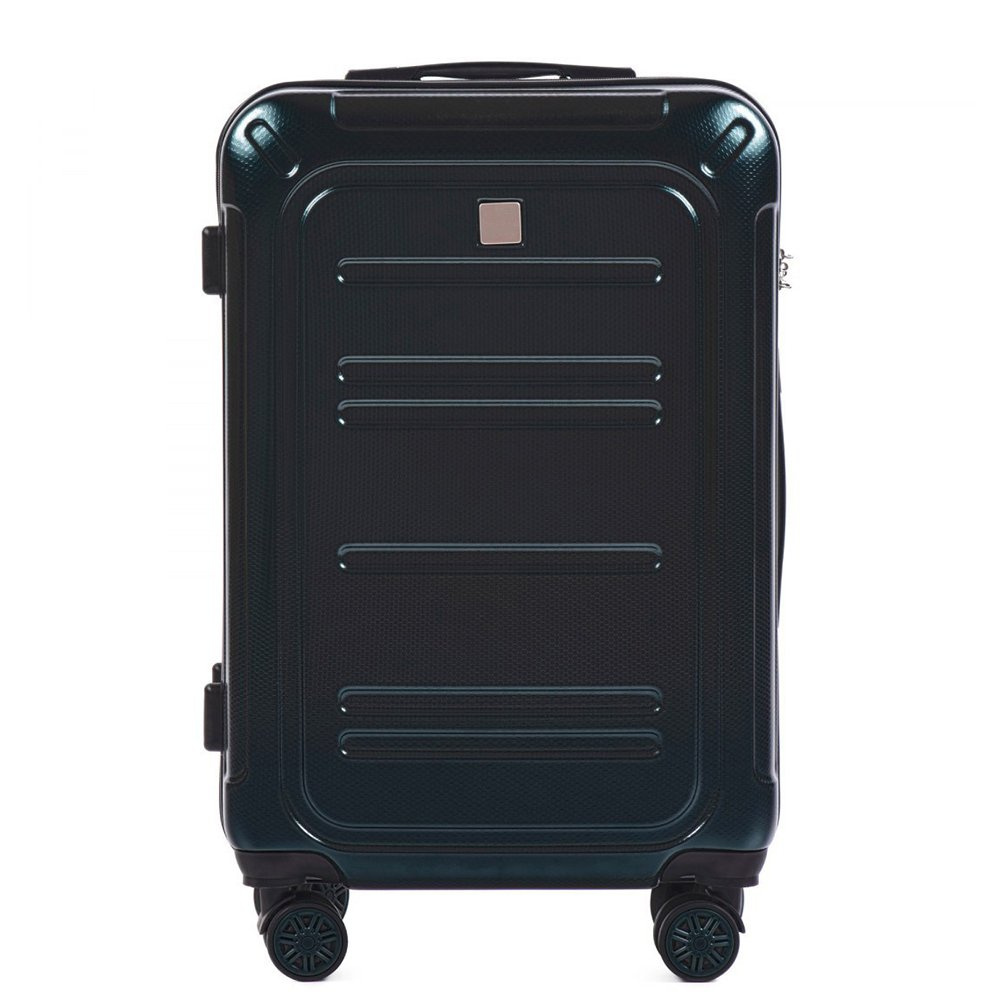 Nowoczesny, lekki model wykonany z bardzo wytrzymałego i odpornego na zarysowanie poliwęglanu, z dwupoziomową teleskopową rączką. Zewnętrzne, przyjemne w dotyku gumowe uchwyty oraz zamek szyfrowy uniemożliwiający dostanie się do wnętrza osobom niepożądanym. Trwały, duraluminiowy stelaż wbudowany w walizkę. Wyposażony w cztery, podwójne obrotowe kauczukowo-gumowe kółka, które zapewniają stabilność oraz lekkość prowadzenia w dowolnym kierunku. Wnętrze w ciemnym sygnowanym kolorze dzielone zamkiem błyskawicznym na dwie funkcjonalne komory.
