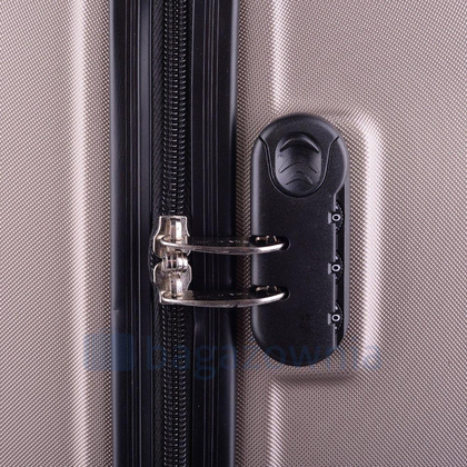 Nowoczesny, lekki model wykonany z bardzo wytrzymałego i odpornego na zarysowanie tworzywa ABS Plus, z dwupoziomową teleskopową rączką. Zewnętrzne, przyjemne w dotyku gumowe uchwyty oraz zamek szyfrowy uniemożliwiający dostanie się do wnętrza osobom niepożądanym. Trwały, duraluminiowy stelaż wbudowany w walizkę. Wyposażony w cztery odpinane, obrotowe kauczukowe kółka, które zapewniają stabilność oraz lekkość prowadzenia w dowolnym kierunku. Wnętrze w ciemnym sygnowanym kolorze dzielone zamkiem błyskawicznym na dwie funkcjonalne komory.
