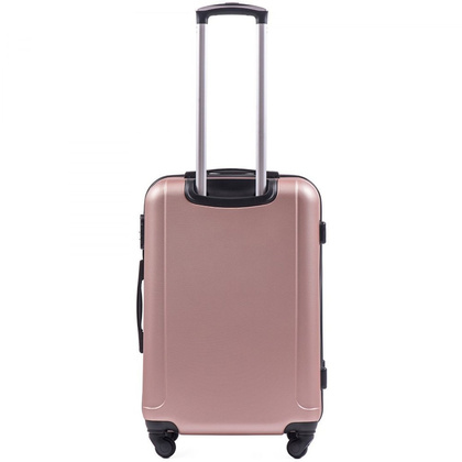 Luksusowa walizka, stworzona z myślą dla najbardziej wymagających klientów. Nowoczesny, lekki model wykonany z bardzo wytrzymałego i odpornego na zarysowanie tworzywa ABS Plus, z dwupoziomową teleskopową rączką. Zewnętrzne, przyjemne w dotyku gumowe uchwyty oraz zamek szyfrowy uniemożliwiający dostanie się do wnętrza osobom niepożądanym. Trwały, duraluminiowy stelaż wbudowany w walizkę. Wyposażony w cztery obrotowe kauczukowe kółka, które zapewniają stabilność oraz lekkość prowadzenia w dowolnym kierunku. Wnętrze w ciemnym sygnowanym kolorze dzielone zamkiem błyskawicznym na dwie funkcjonalne komory.