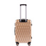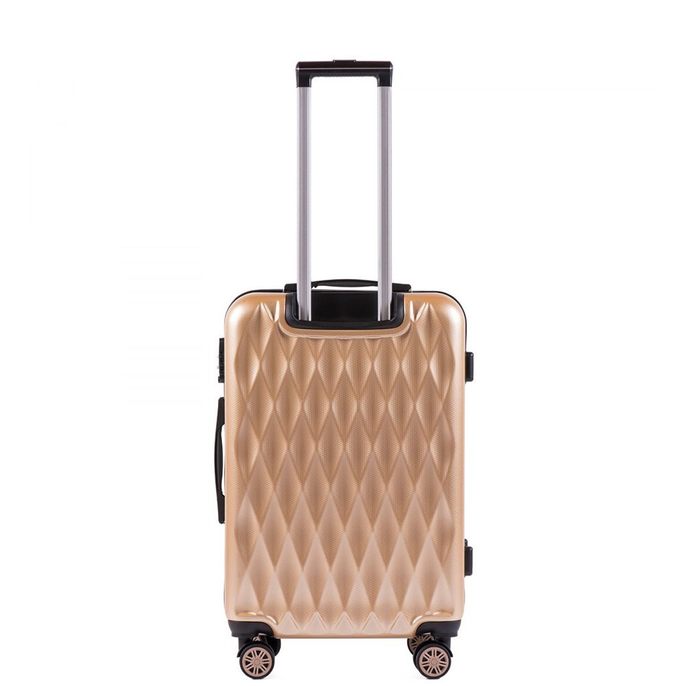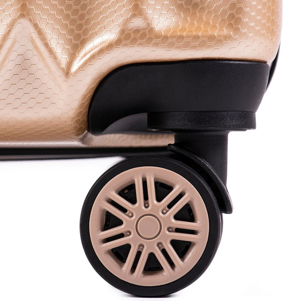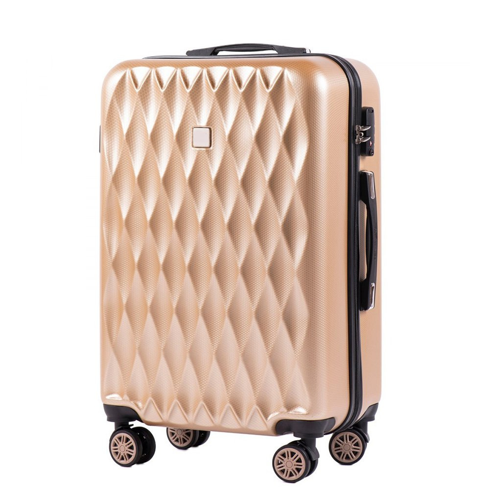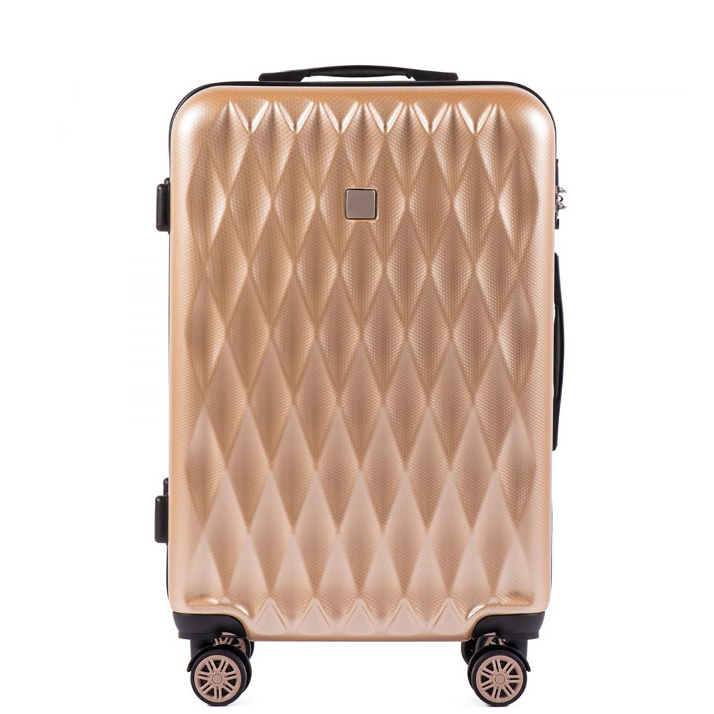 Nowoczesny, lekki model wykonany z bardzo wytrzymałego i odpornego na zarysowanie poliwęglanu, z dwupoziomową teleskopową rączką. Zewnętrzne, przyjemne w dotyku gumowe uchwyty oraz zamek szyfrowy uniemożliwiający dostanie się do wnętrza osobom niepożądanym. Trwały, duraluminiowy stelaż wbudowany w walizkę. Wyposażony w cztery, podwójne obrotowe kauczukowo-gumowe kółka, które zapewniają stabilność oraz lekkość prowadzenia w dowolnym kierunku. Wnętrze w ciemnym sygnowanym kolorze dzielone zamkiem błyskawicznym na dwie funkcjonalne komory.