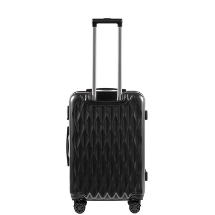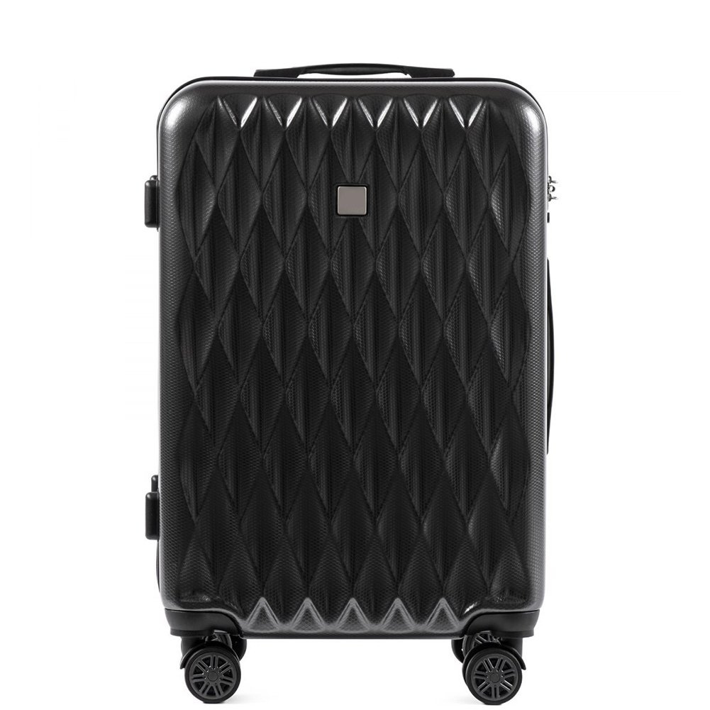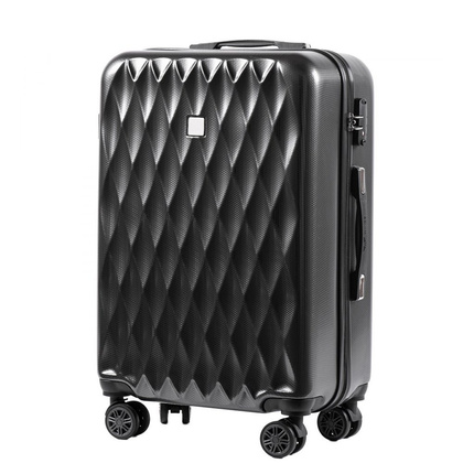 Nowoczesny, lekki model wykonany z bardzo wytrzymałego i odpornego na zarysowanie poliwęglanu, z dwupoziomową teleskopową rączką. Zewnętrzne, przyjemne w dotyku gumowe uchwyty oraz zamek szyfrowy uniemożliwiający dostanie się do wnętrza osobom niepożądanym. Trwały, duraluminiowy stelaż wbudowany w walizkę. Wyposażony w cztery, podwójne obrotowe kauczukowo-gumowe kółka, które zapewniają stabilność oraz lekkość prowadzenia w dowolnym kierunku. Wnętrze w ciemnym sygnowanym kolorze dzielone zamkiem błyskawicznym na dwie funkcjonalne komory.