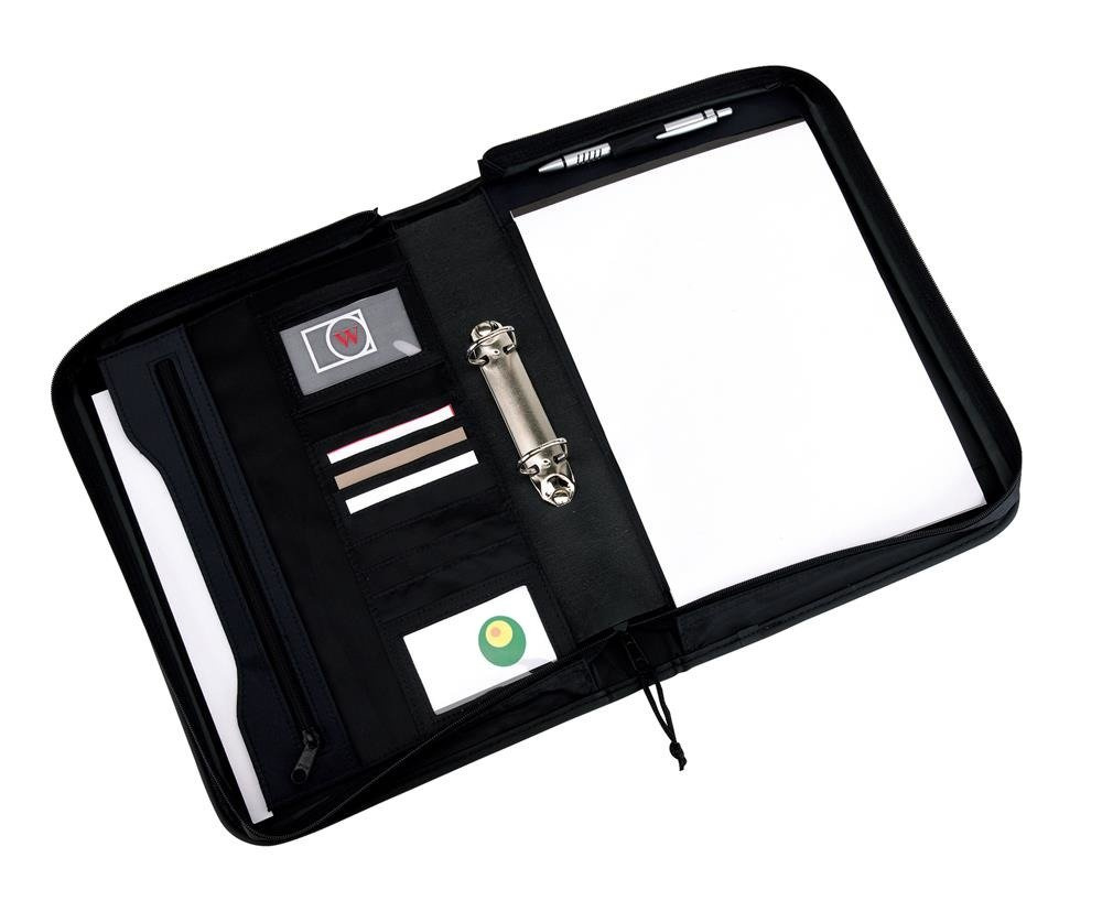 Teczka segregatorowa AVANTI w formacie A4 ze szlufką na długopis, kilkoma kieszonkami, uchwytem i zamkiem błyskawicznym.
