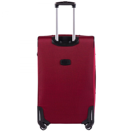 Nowoczesny, lekki model wykonany z bardzo wytrzymałego i odpornego tworzywa CODURA, z dwupoziomową teleskopową rączką. Zamek szyfrowy uniemożliwiający dostanie się do wnętrza osobom niepożądanym. Trwały, duraluminiowy stelaż wbudowany w walizkę. Wyposażony w cztery kauczukowo-gumowe kółka, które zapewniają stabilność prowadzenia. Wnętrze w ciemnym sygnowanym kolorze z dodatkową przegrodą zamykaną na suwak.
