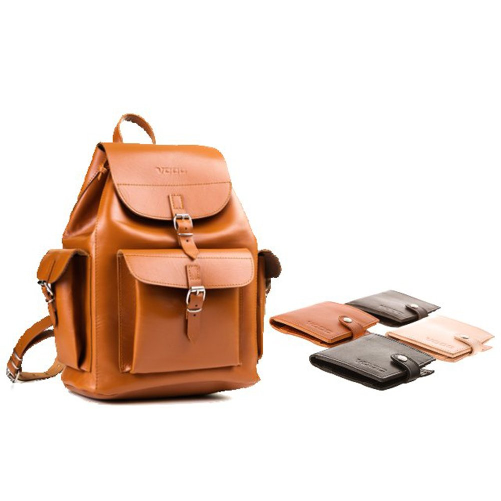 Plecak ze skóry naturalnej Vintage P40 + Portfel z juchtu Vintage P21