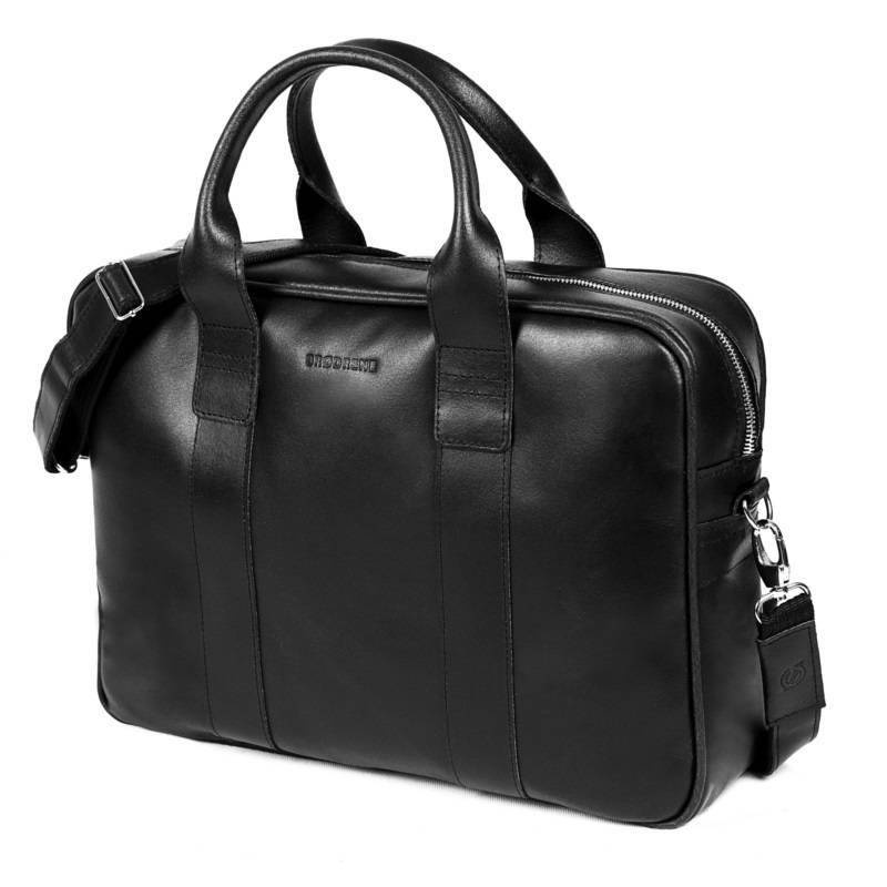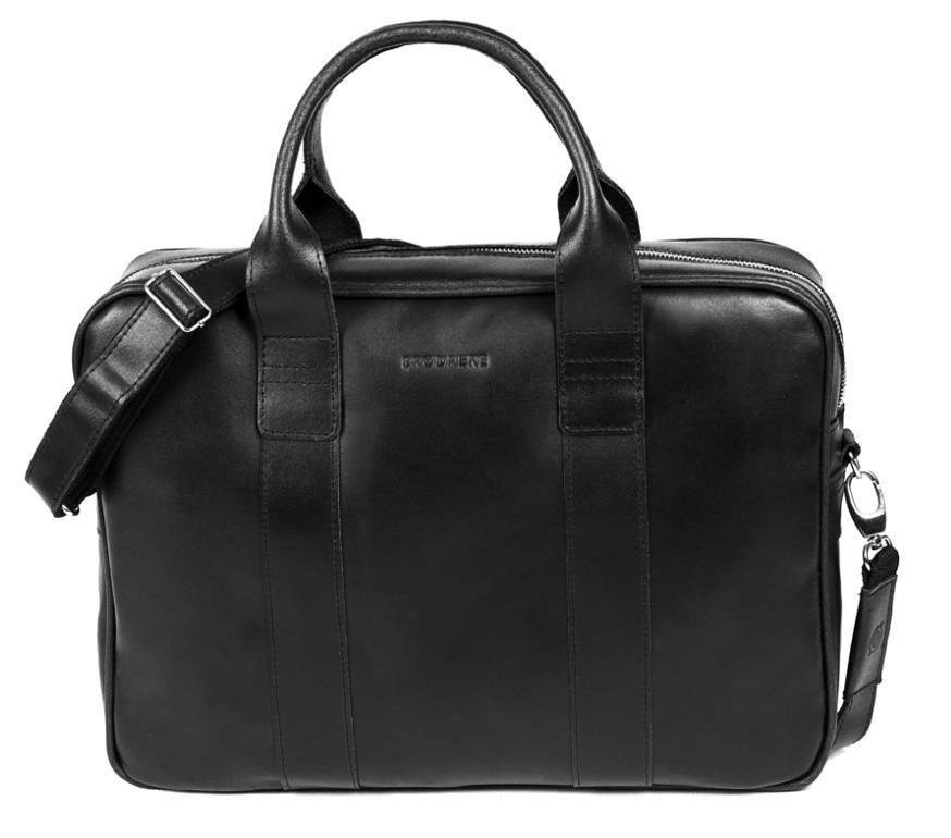 Męska torba na ramię ze skóry naturalnej na laptop BRØDRENE R01 czarny Kolor wnętrza: Czarny - min. zamówienie 20 / 50 / 100 szt.