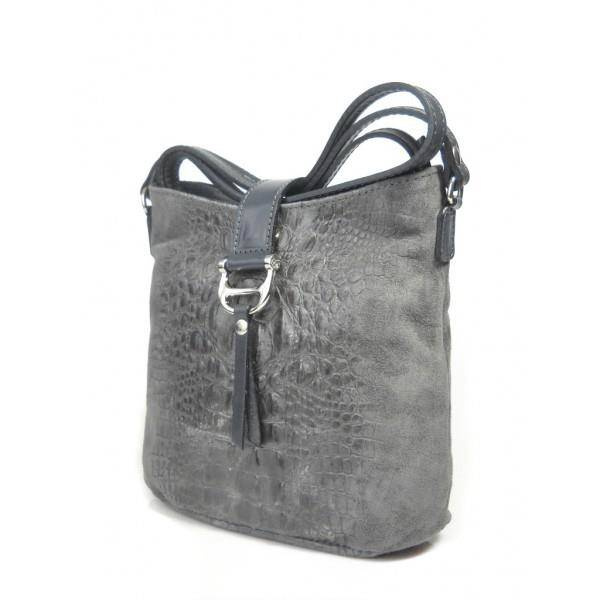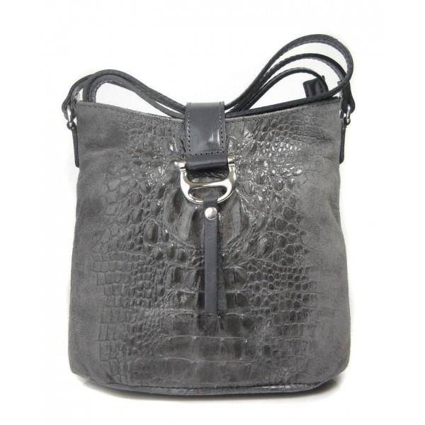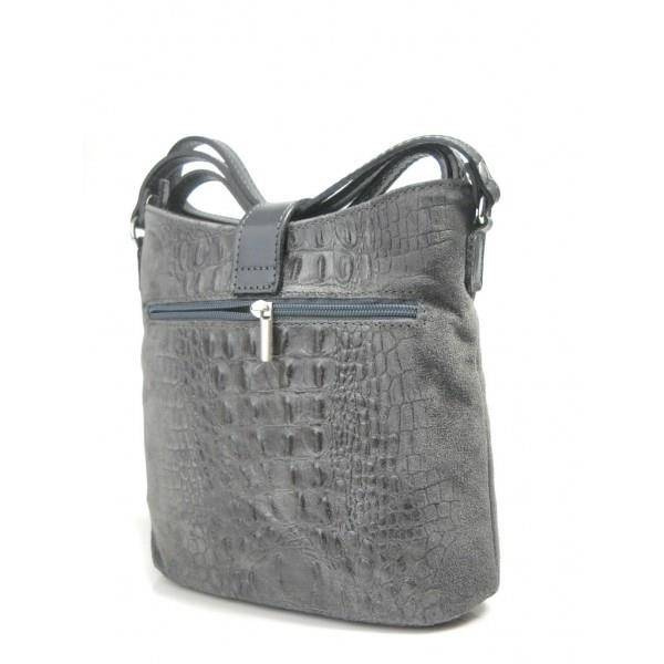 wykonana ze skórki naturalnej zamszowej z motywem krokodyla,