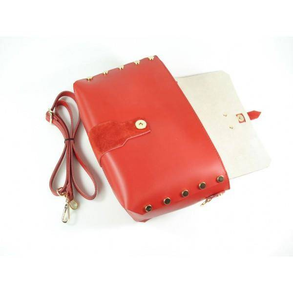 Oryginalna włoska torebka listonoszka -kufereczek wykonana ze skórki naturalnej + zamsz,