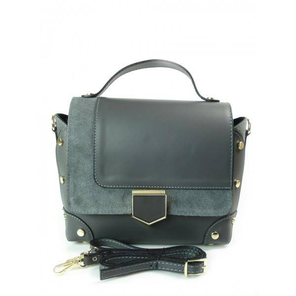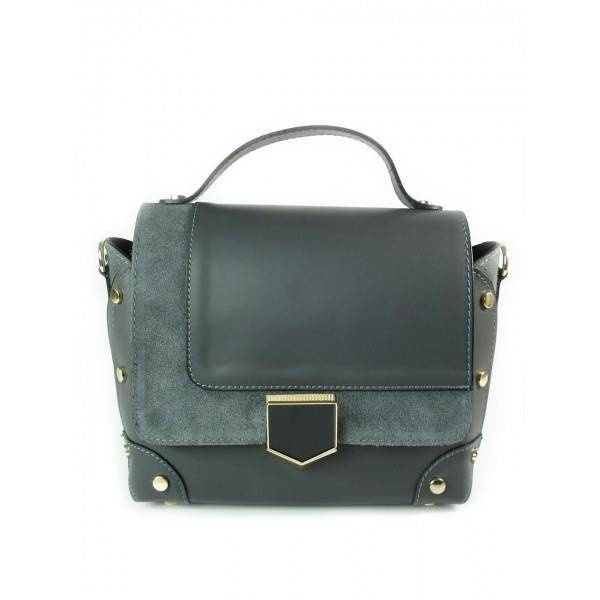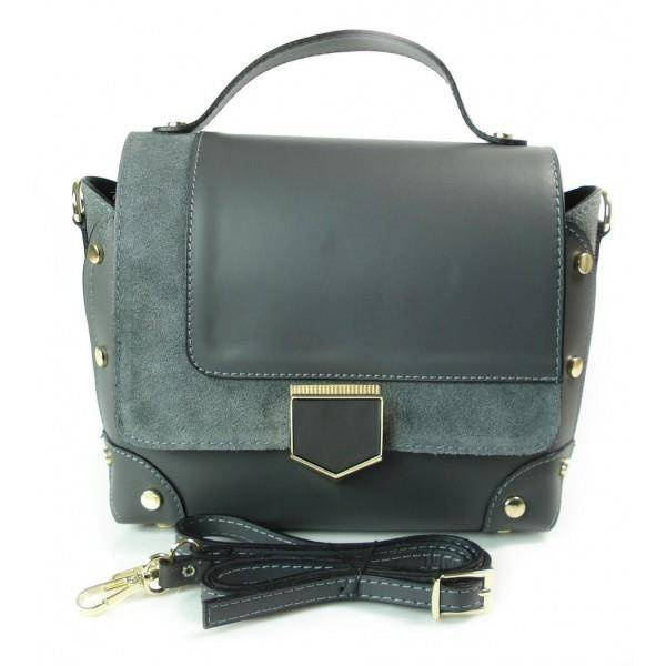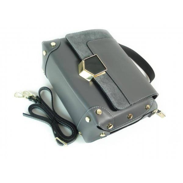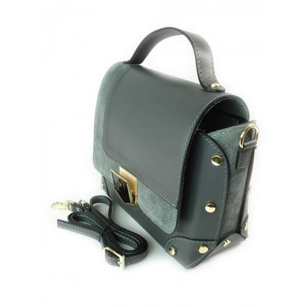 Oryginalna włoska torebka listonoszka -kufereczek wykonana ze skórki naturalnej + zamsz,