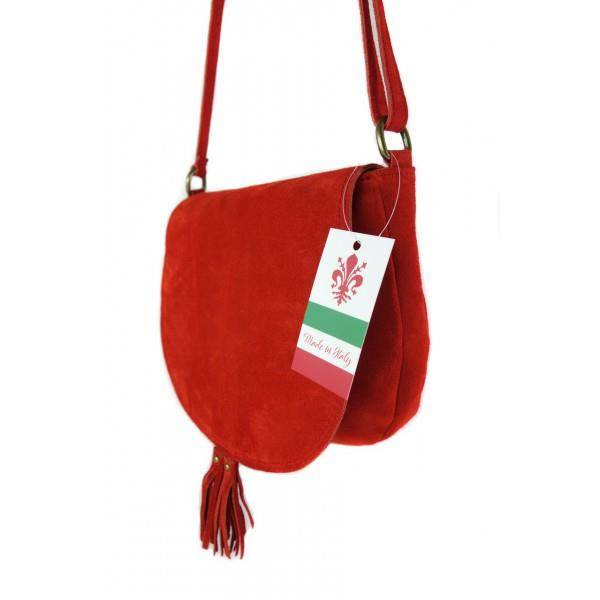 Zamszowa listonoszka ,chlebak Vera Pelle ,pojemna przewieszka A5 Czerwona VP490R