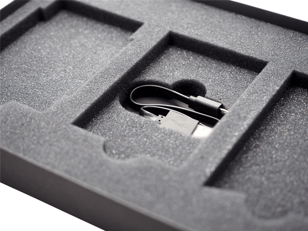 Powerbank posiada wejście i wyjście mini USB oraz adaptery: TYP C i iPhone Lightning