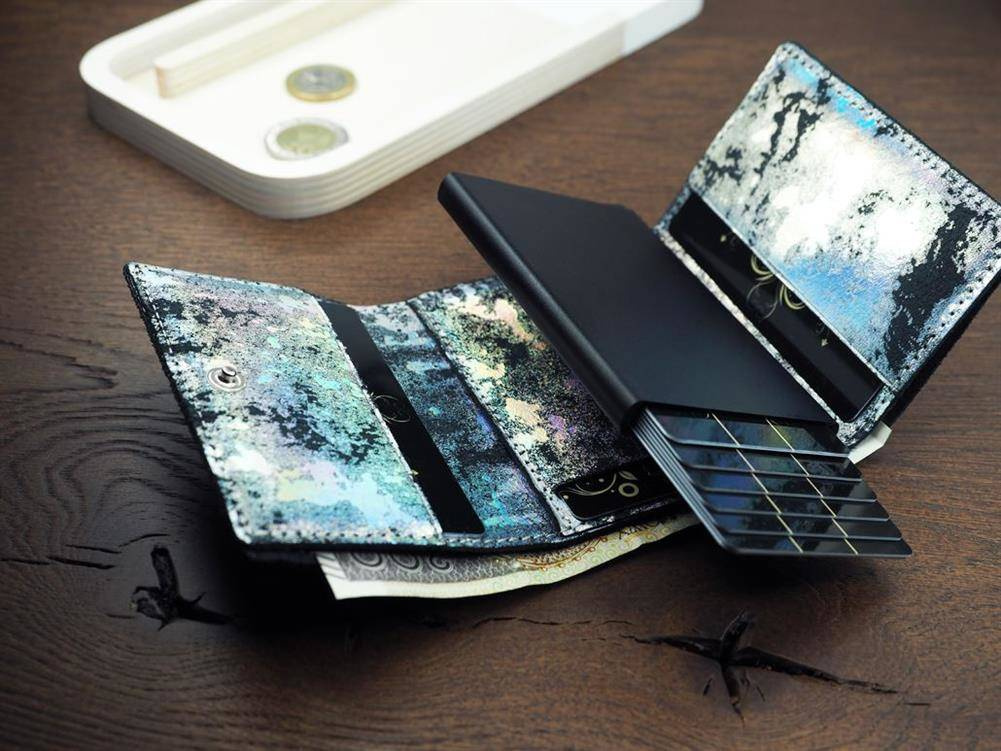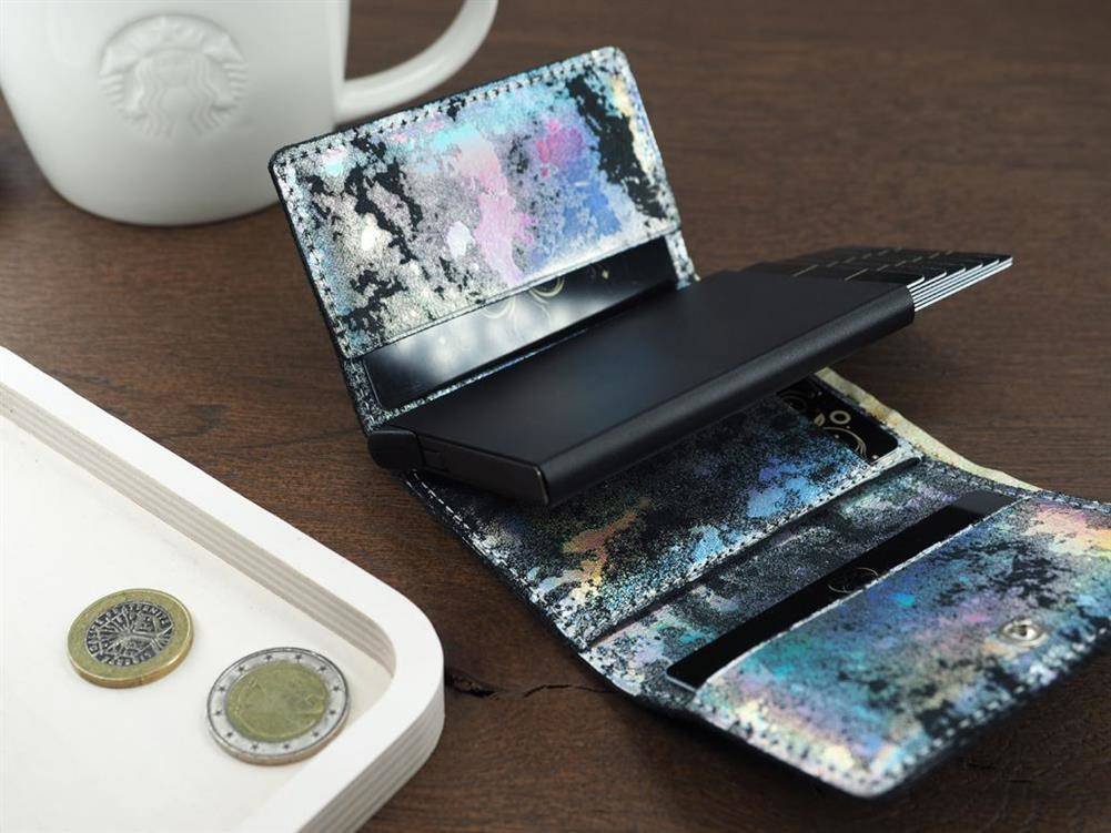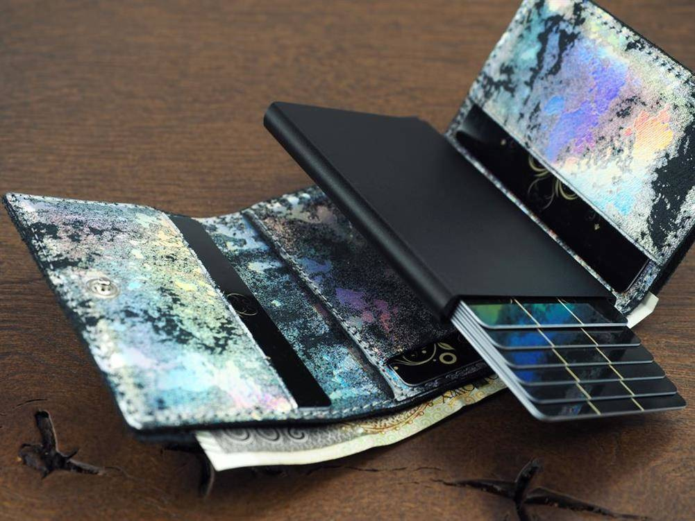 Kieszeń na banknoty Mieści 10 kart Wzór zarejestrowany (R) Zabezpieczenie RFID Zapięcie na zatrzask Pudełko papierowe w cenie