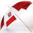 Parasol z prostą, drewnianą rączką. Kolorowe segmenty parasola łączone są na przemian z kolorem białym, dzięki temu parasol przyciąga wzrok i stanowi najtańsze, skuteczne medium reklamowe.