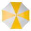 Parasol z prostą, drewnianą rączką. Kolorowe segmenty parasola łączone są na przemian z kolorem białym, dzięki temu parasol przyciąga wzrok i stanowi najtańsze, skuteczne medium reklamowe.
