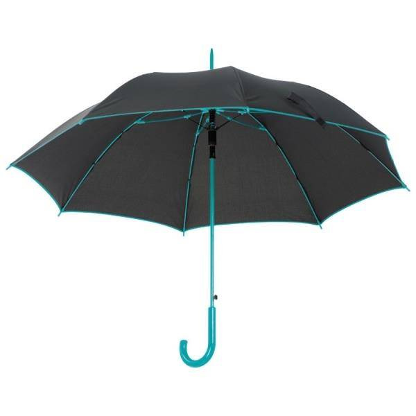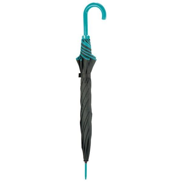 Rączka oraz krawędzie parasola są w tym samym, ale innym niż całość kolorze.