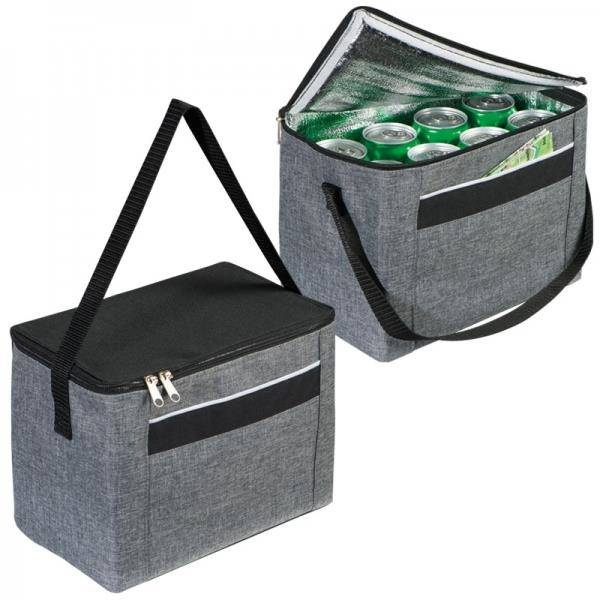Torba-lodówka pomieści 6 lub 8 puszek bądź butelek 0,5l. Posiada raczkę i przegrodę z przodu, zamykana na zamek błyskawiczny.