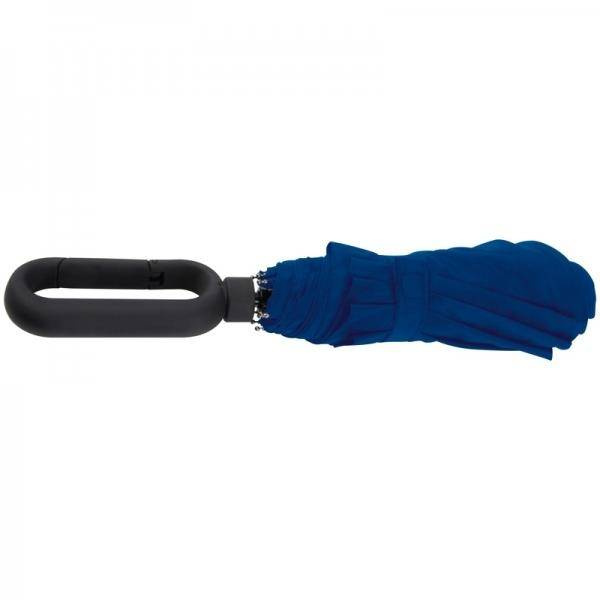 Niewielka parasolka z gumowaną rączką-karabińczykiem.