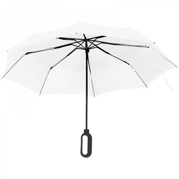 Niewielka parasolka z gumowaną rączką-karabińczykiem.