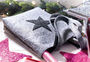 Filcowa torba na zakupy Star Dust zamykana na rzep, posiada 2 długie uchwyty, z przodu aplikacja z motywem gwiazdy