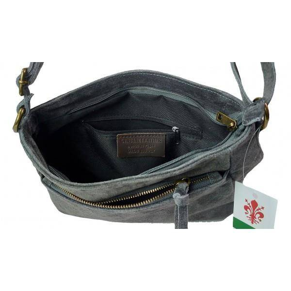 Oryginalna włoska torebka listonoszka wykonana ze skórki naturalnej zamszowej