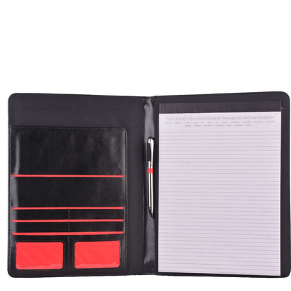Aktówka wyposażona w kieszeń na dokumenty A5, uchwyt na długopisy+ długopis, kieszonki na wizytówki, miejsce na notes.