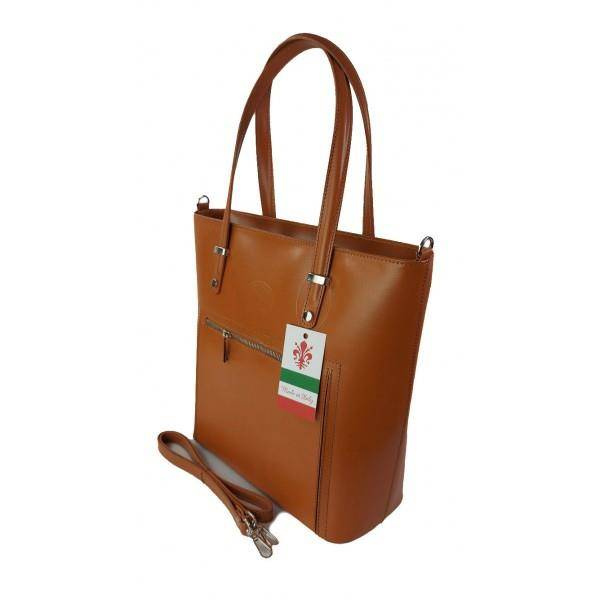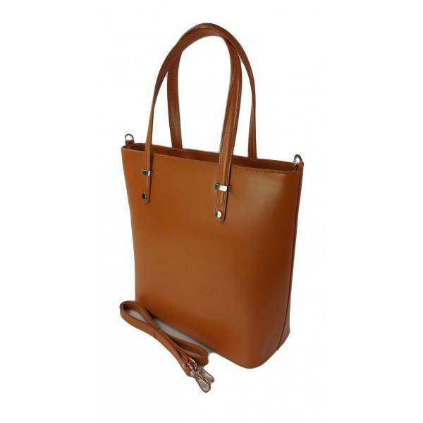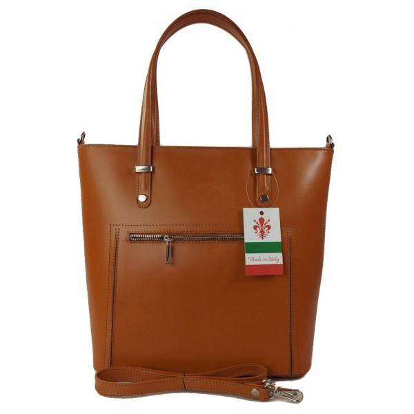 Włoska skórzana klasyczna torebka na ramię Vera Pelle ,format A4, Camel VBZ66C