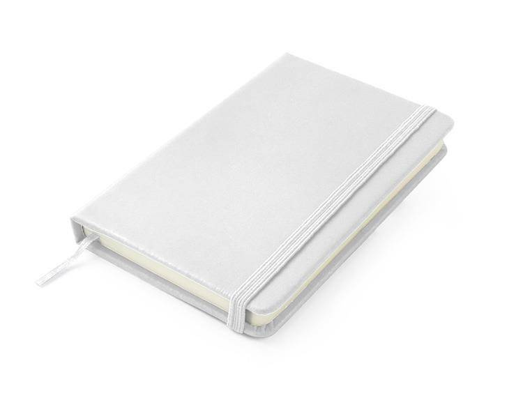 Gustowny notes A6 z kolorową gumką wykonany z ekoskóry PU.