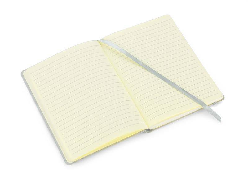 Zamykany za pomocą gumki, dodatkowo wyposażony w zakładkę - wstążeczkę.