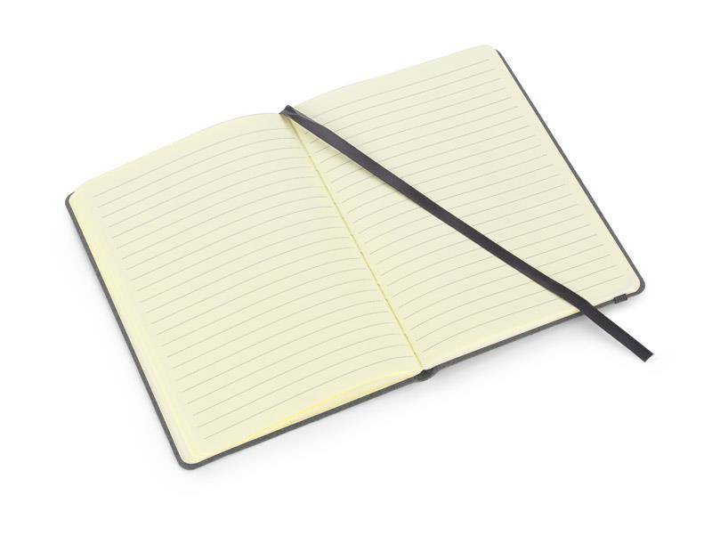 Zamykany za pomocą gumki, dodatkowo wyposażony w zakładkę - wstążeczkę.