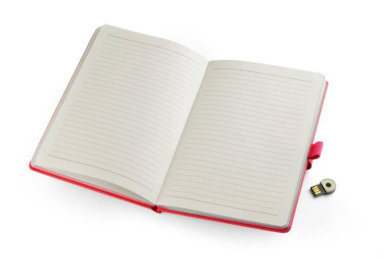 Zamykany jest na metalowy zatrzask z magnesem, w którym ukryta jest pamięć USB o pojemności 16 GB.