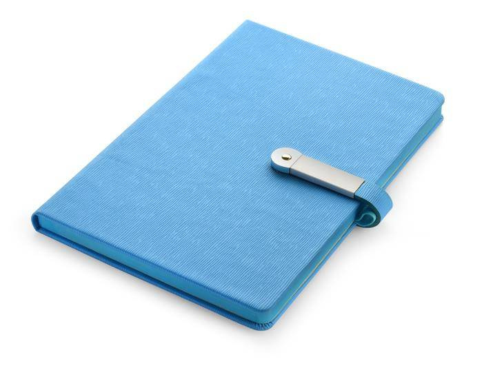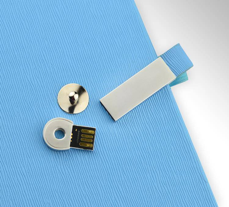 Zamykany jest na metalowy zatrzask z magnesem, w którym ukryta jest pamięć USB o pojemności 16 GB.